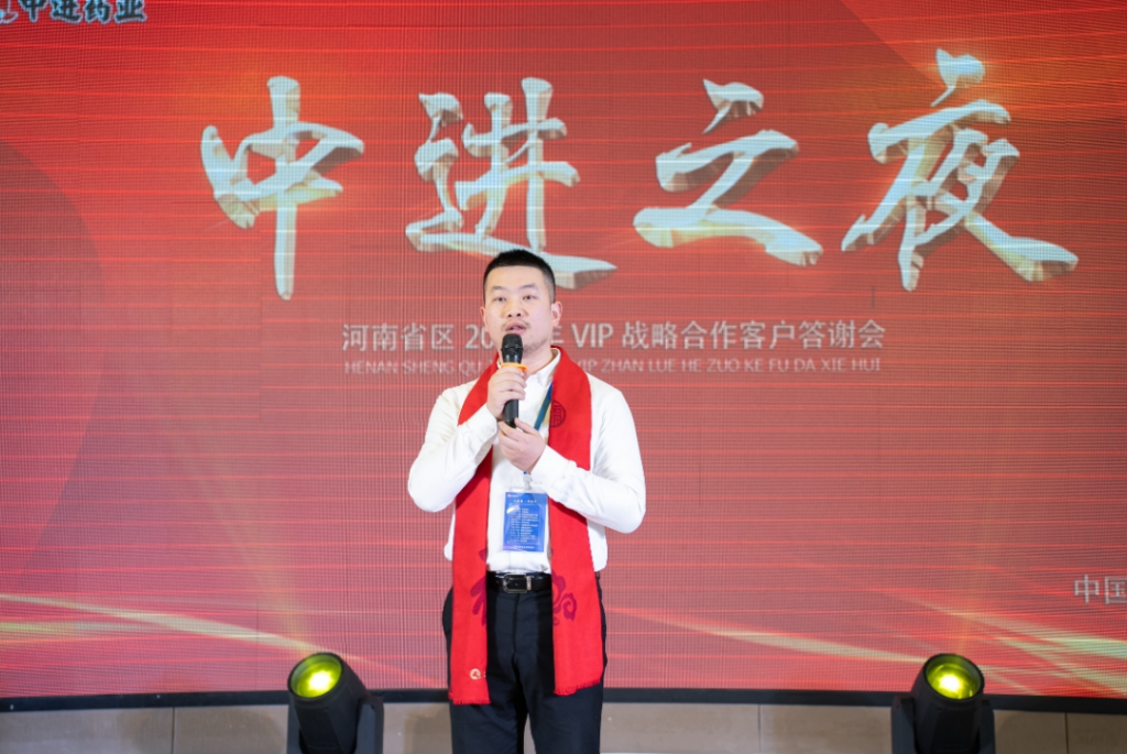 回顧本次合作的歷程,離不開客戶的參與和支持,河南名藥師大藥房連鎖有限公司常務副總魏海濤先生在會中分享了與中進藥業河南省區合作的點點滴滴,為本次活動增添了亮點,更為我們未來的合作奠定了堅實的基礎。我們相信,在雙方的共同努力下,雙方的發展將會迎來更加美好的明天。