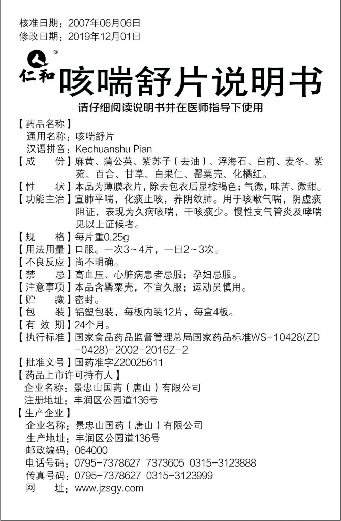 宣肺平喘,化痰止咳,養陰斂肺。用于咳嗽氣喘,陰虛痰阻證,表現為久病咳喘,干咳痰少。慢性支氣管炎及哮喘見以上證候者。