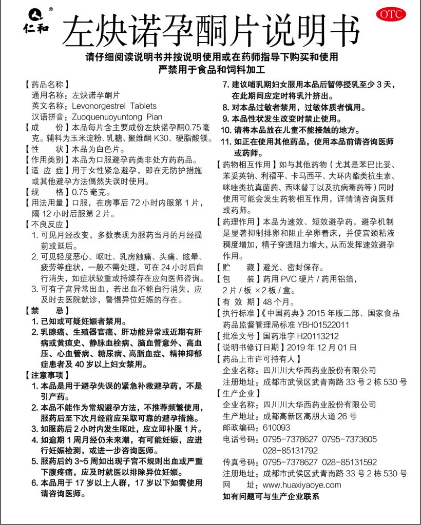 用于女性緊急避孕,即在無防護措施或其他避孕方法偶然失誤時使用。