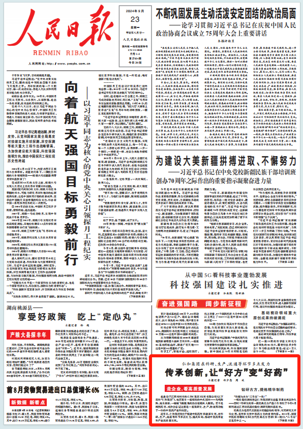 傳承創(chuàng)新,讓“好方”變“好藥” ——《人民日報》9月23日頭版點(diǎn)贊仁和集團(tuán)