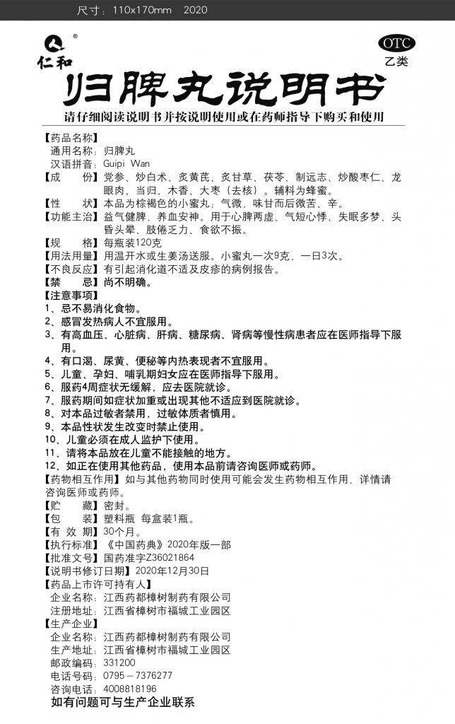 益氣健脾,養血安神。用于心牌兩虛、氣短心悸、失眠多夢、頭昏頭暈、肢倦乏力、食欲不振。