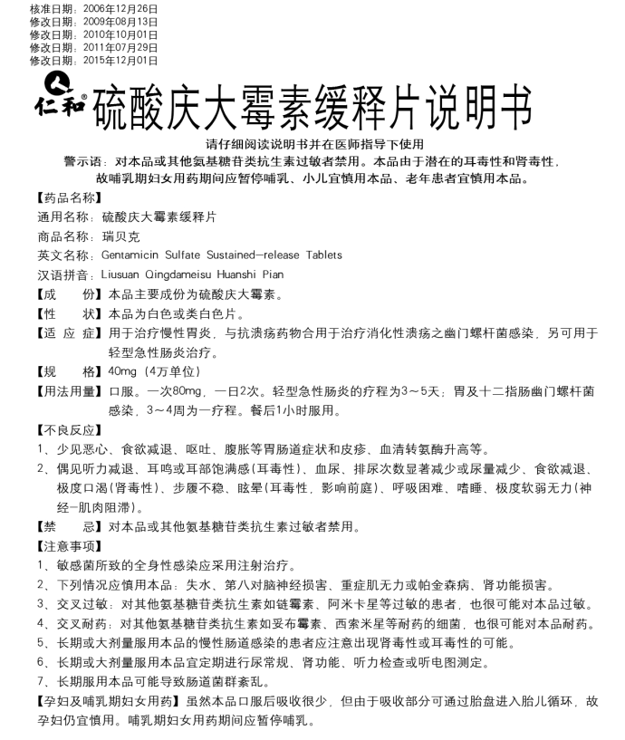 硫酸慶大霉素緩釋片(24片)