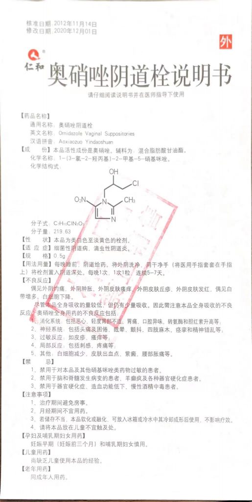奧硝唑陰道栓