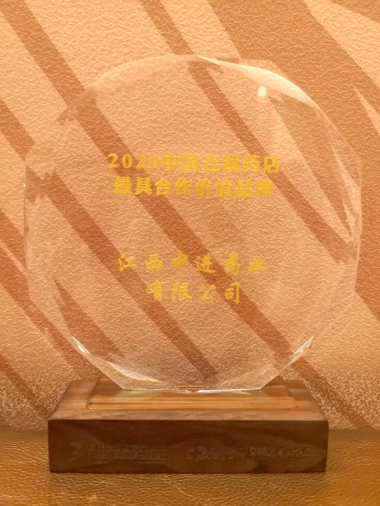 喜報:中進藥業再獲“2020中國連鎖藥店最具合作價值品牌“獎