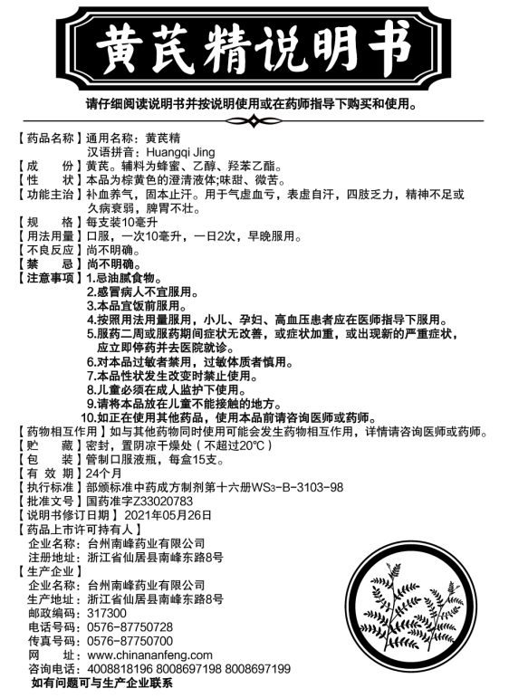 黃芪精15支/盒