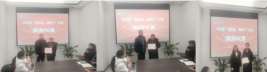 ? ? ? ?征程正未有窮期,不待揚(yáng)鞭自?shī)^蹄。?市場(chǎng)部秉著貫徹公司2022年“整隊(duì)伍 強(qiáng)執(zhí)行”的活動(dòng)精神,以提升市場(chǎng)部人員的專業(yè)水平,解決實(shí)際工作問(wèn)題的能力為目標(biāo),于2023年1月17日在和諧樓一樓會(huì)議室舉行了年度演講PK賽,特邀公司副總經(jīng)理兼財(cái)務(wù)部長(zhǎng)陳春林、公司副總經(jīng)理兼市場(chǎng)部部長(zhǎng)羅來(lái)虎、人事主管陳琦擔(dān)當(dāng)評(píng)委,比賽由汪勁松主持。