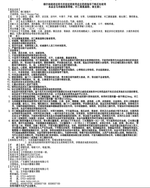 用于外感風熱所致的流行性感冒,癥見發熱、頭痛、咳嗽、口干、咽喉疼痛。