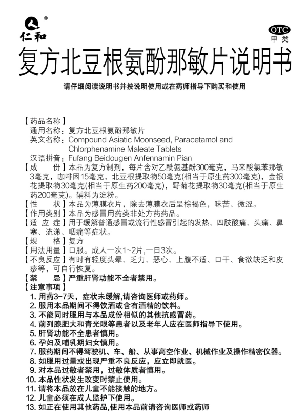復方北豆根氨酚那敏片